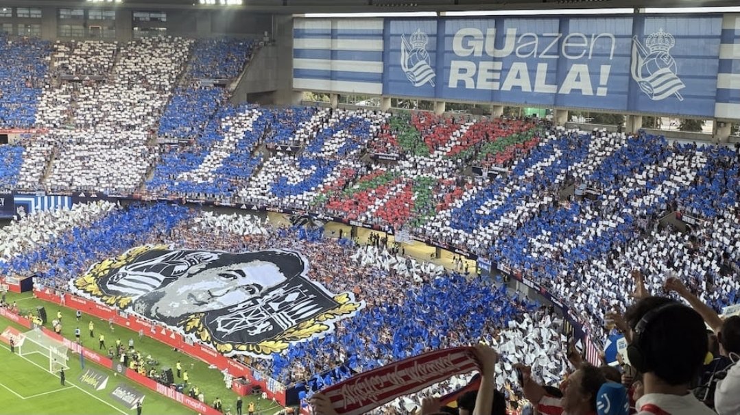 Espainiako Erresumako ereserkia bozgorailuetatik hiper-altu ipini bazen ere, oso-oso nabarmena izan zen estadio erdiak gogotik egin zuela txistu, eta enbarazu egin ziola beste erdiaren zati inportanteari. Realzaleek ikurrina mordo bat eta beste makina bat banderatxo astindu zituzten, Aitor Zabaletaren irudidun pankarta izugarri handi bat zabaldu zuten, eta hori ez zitzaion batere gustatu Espainiako eskuinari. Begira, Cope irrati-kateko aurkezleak konparatu egin zituen Espainiako ereserkiari txistu jotzea eta “musulman ez den orok egin dezala salto” oihukatzea, bata eta bestea gorrotoan oinarritzen direlako. Bide antzekotik baina apur bat lasaiago jo zuen PP alderdiak, erne, Núñez Feijóo eta Pradales aldamenean eserita zeudenean. “Batzuek kirola erabiltzen dute haien etsipenak azaleratzeko eta politika egiteko”.